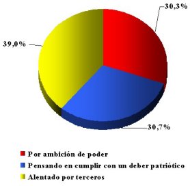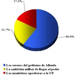 La visión de los santiaguinos y el golpe del 73A pesar de las muchas revelaciones, que se incrementaron en el último tiempo con motivo de los 30 años del golpe de estado, menos de la cuarta parte (17,6 por ciento) de los consultados por la Universidad Diego Portales cree que la causa principal de la intervención militar fueron las maniobras de los opositores a la Unidad Popular. La gran mayoría (60 por ciento) aseguró esta semana, frente una consulta telefónica, que el golpe se originó en los errores del gobierno de Allende, mientras que más de una quinta parte (22,7 por ciento) culpa a la ambición militar de llegar al poder. El resultado puede ser sorprendente: durante años, incluso durante el régimen militar, se difundió la tesis de una oposición alentada y financiada desde el exterior. Un reciente libro de la periodista Patricia Verdugo insiste una vez más en la información generada en Estados Unidos, empezando por el Informe Church y luego por los documentos desclasificados. Pero, hasta ahora al menos, el 82, 7 por ciento los santiaguinos mayores de 18 años no están convencidos. Prácticamente en la igual proporción (82 por ciento) las personas consultadas desestiman que podrían llegar a darse las condiciones para que se produzca otro golpe de Estado. Apenas una minoría (18 por ciento) sí lo cree posible. Las diferencias, en cambio, se producen respecto de las motivaciones que tuvo en su momento el general Augusto Pinochet. Una leve mayoría relativa (39 por ciento) cree que actuó alentado por terceros, mientras que el resto de las opiniones se divide en partes casi matemáticamente iguales entre los que creen que actuó por ambición de poder (30,3 por ciento) y los que sienten que lo hizo pensando en cumplir un deber patriótico (30.7 por ciento). Dos datos más completan esta mirada: 1.- Seis de cada diez consultados piensan que Allende debería haberse entregado cuando fue conminado a rendirse por los comandantes en jefe, en la mañana del 11 de septiembre de 1973. Un sólido 40 por ciento, sin embargo, piensa lo contrario. 2.- Una proporción aun mayor (64 por ciento) de los consultados muestra que los medios de comunicación y el periodismo no siempre atinan con sus reacciones, ya que consideran que la cobertura periodística que han dado los medios a los 30 años del golpe ha sido exagerada, en otras palabras, se sienten saturados de tanto despliegue de información, recuentos y comentarios. Uno de cada cuatro consultados (26 por ciento) la considera adecuada y uno de cada diez (10 por ciento) insuficiente. Todo lo cual confirma que, como sostiene el investigados norteamericano Maxwell McCombs, padre de la teoría de la agenda setting, que los medios pueden poner temas en la mesa de discusión, pero no pueden determinar cómo opinen los ciudadanos. Este es un buen ejemplo.